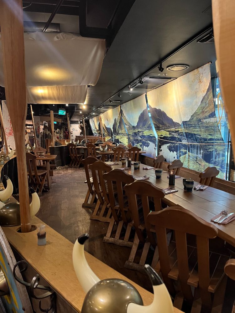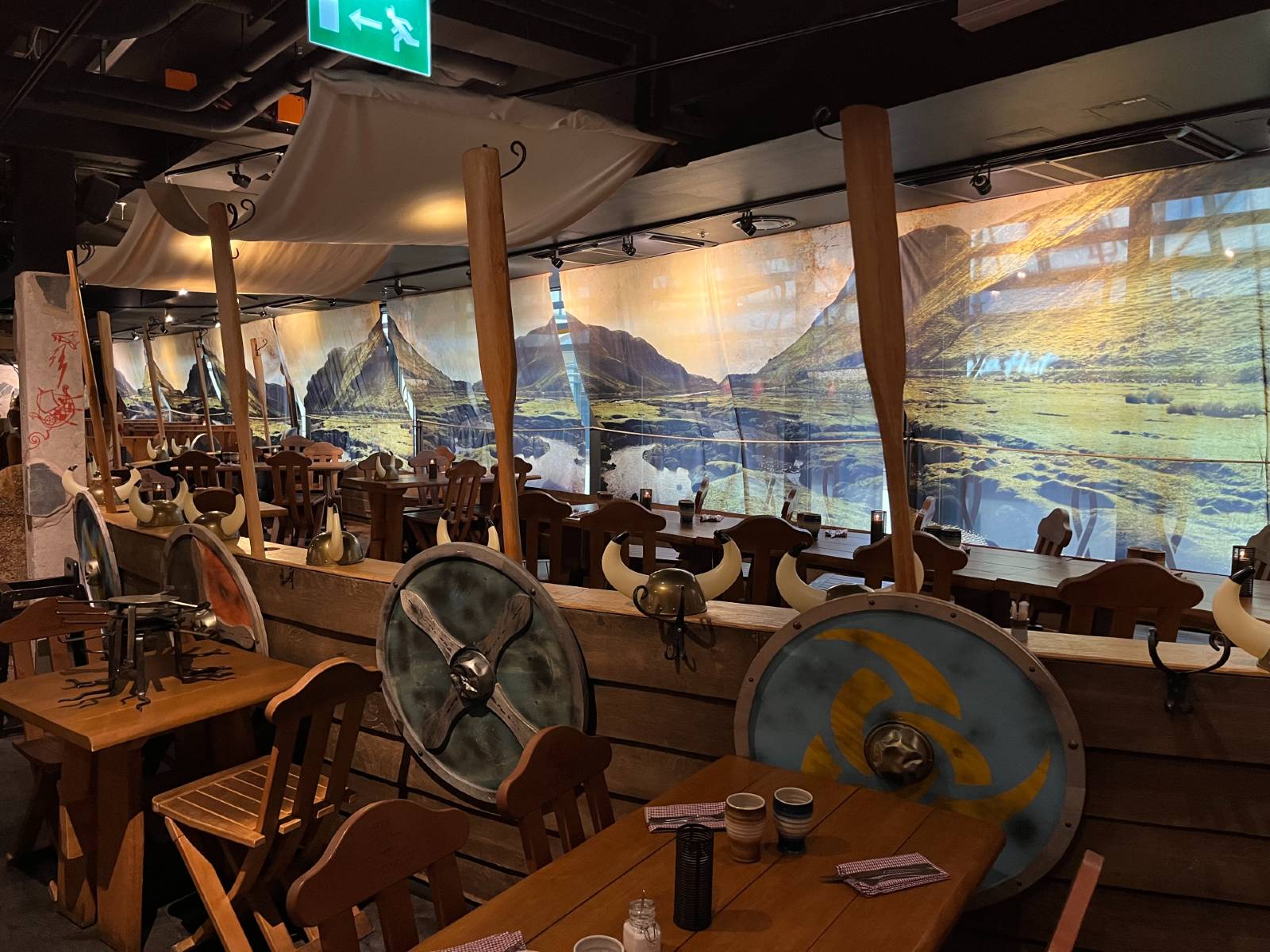 Ravintolan viikinkimiljöö loihtii ainutlaatuisen tunnelman